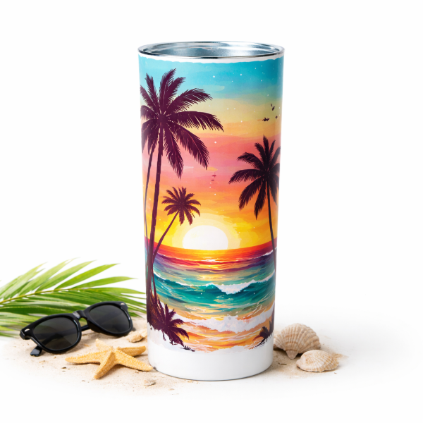 Vaso térmico de acero inoxidable sublimable, también conocido como Tumbler. Ideal para personalizar con tus diseños y disfrutar de tus bebidas favoritas manteniendo la temperatura durante horas.
