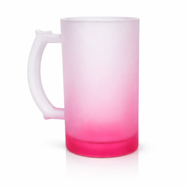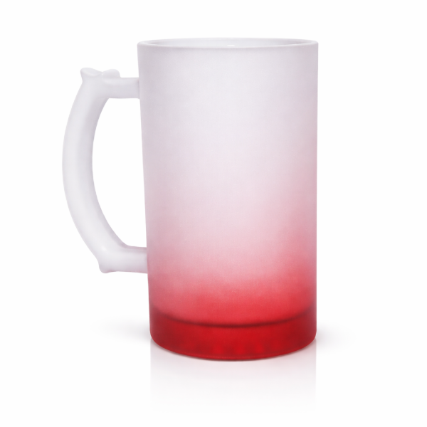 Chopp importado de vidrio esmerilado de alta calidad, con fondo de color sublimable. Ideal para personalizar con diseños, frases o logos y crear regalos únicos o piezas exclusivas para eventos y emprendimientos.