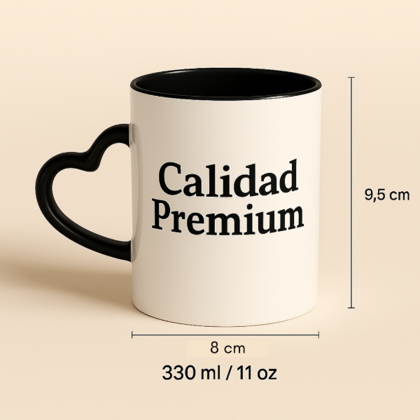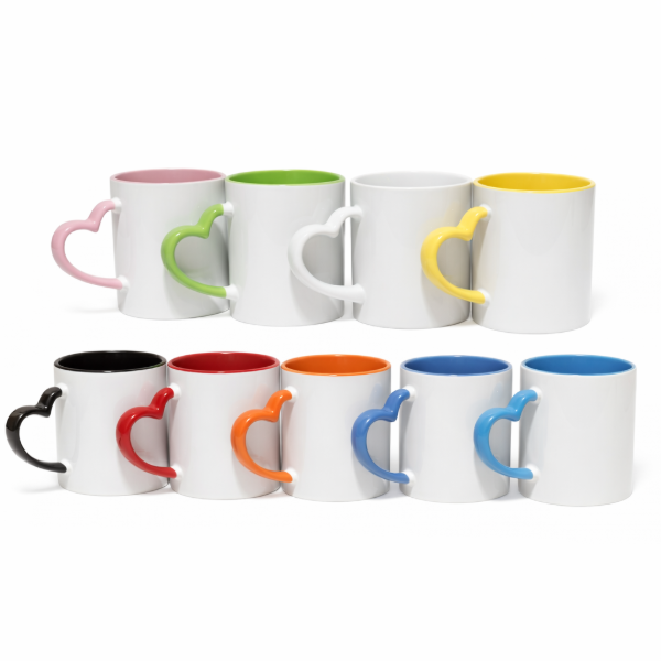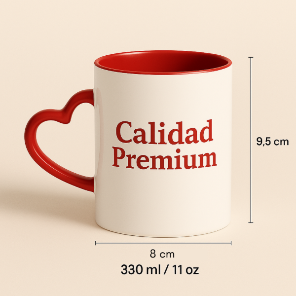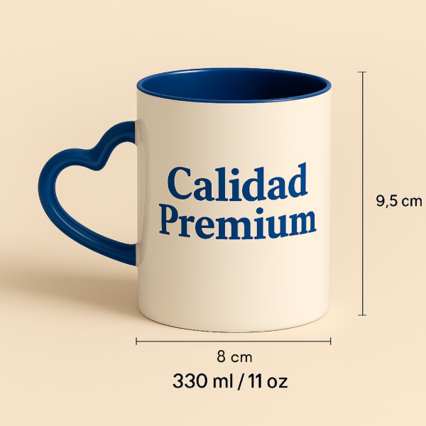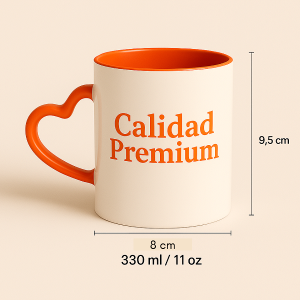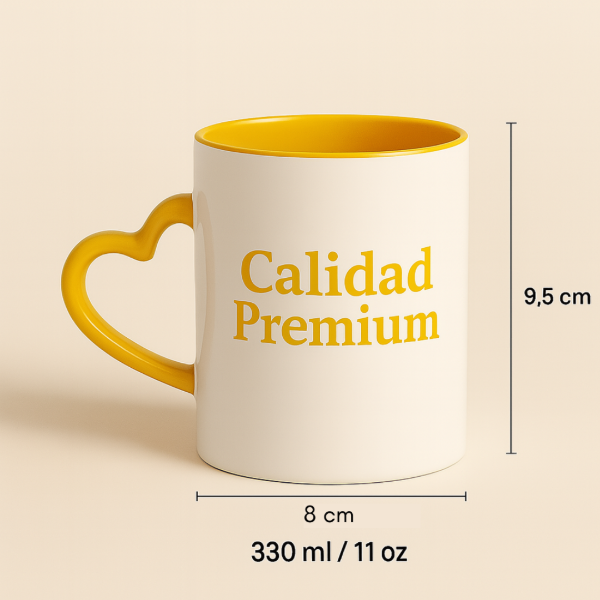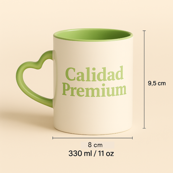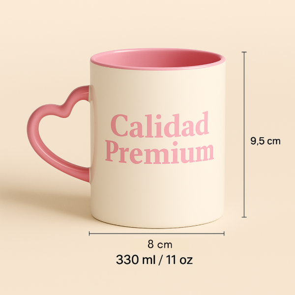 Taza interior color con asa corazón de cerámica Importada